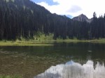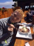 Wat een overweldigend mooi uitzicht. We zitten op het terras bovenaan de top van de Chrystal Mountains en kijken uit op Mount Rainier (+4600 meter). We hebben hier perfecte wifi en kunnen niet ophouden met selfies maken en berichtjes sturen naar Holland. PJ krijgt van zijn weerapp de melding dat het in Ellecom gaat regenen en wij zitten hier heerlijk met een graadje of 26 op 2300 meter hoogte in de stralende zon. Wat een luxe.
