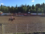 Na het eten vertrekken we direct voor de rodeo. Als we het terrein oprijden worden we al hartelijk ontvangen door een echte cowboy. We nemen plaats op de tribune en de spreekstalmeester komt gelijk een praatje maken met PJ. Ik volg het gesprek niet echt, maar de twee lijken al snel beste vrienden. We zijn een beetje vroeg en moeten nog even wachten voor het start. Een aantal cowboys zijn al aan het warmrijden en dat beloofd al veel goeds.