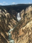 We bekijken de canyon vanaf Artist Point. Het heet daar zo vanwege het mooie kleurenpalet. De canyon heeft twee watervallen. Upper en Lower Falls. Vanaf Artist Point hebben we uitzicht op Lower Falls (94 meter hoog). Het is maar een klein stukje naar de volgende parkeerplaats voor de wandeling naar Upper Falls (met z’n 33 meter lang niet zo indrukwekkend).