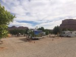 We vinden net voor de ingang van Canyonlands National Park en Arches National Park een fantastisch mooie camping met mooi sanitair (allemaal privé badkamers), leuke speeltuin, winkel, tankstation en mini zwembadje. Het terrein beschikt zelfs over een western kerk. Het is wel een beetje warm, zo’n 38 graden en PJ besluit om een eindje te gaan hardlopen (idioot)!! Gelukkig staat er een ietwat verkoelend briesje.
