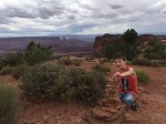 Bij het eerste uitzichtpunt gaat het al mis. Op onze teenslippertjes en ballerina’s besluiten we de Rim trail (is een wandeling langs de rand van de canyon) van 1,6 mijl te doen van het bezoekerscentrum naar Dead Horse Point. We twijfelen wel wat – we hebben weer geen water of eten mee – maar we wagen de gok. Al gauw zijn we er achter dat het geen round trip van 1,6 mijl is, maar one way… Dat wil dus zeggen 3,2 mijl = 5 kilometer op slippertjes???
