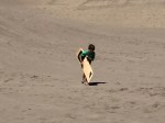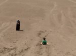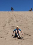 We vinden een stuk karton en willen ermee de berg af sleeën. Dit lukt niet en we lachen ons kapot. Een ontzettend aardige Amerikaanse familie ziet ons hannesen en leent ons hun gehuurde sandboards (snowboards, maar dan voor in het zand). Siem gaat als eerste van een hele hoge heuvel. Het gaat erg hard en hij maakt dan ook een behoorlijke smakkerd… Gelukkig staat hij direct weer op en lacht hij. Hij moet nu alleen nog bult op en het zand is gloeiend heet.